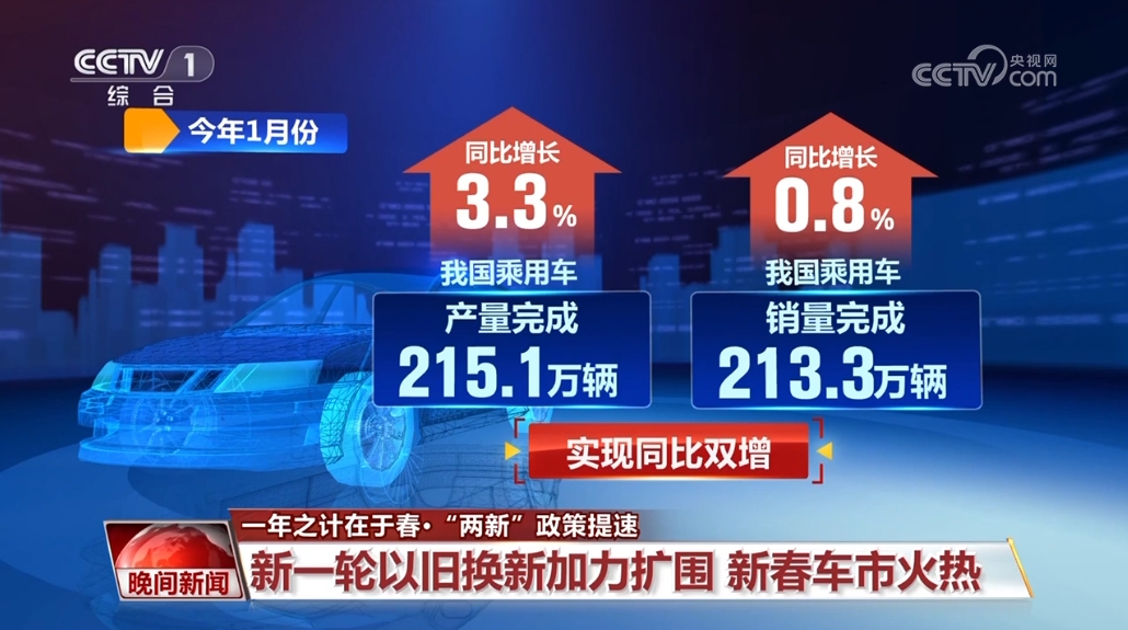 新春伊始,各地持续落实落细国度新一规模设备更新和消费品以旧换新政策,政策效能加快,无效激发了内需潜力。以往春节前后是汽车市场发卖的淡季,但本年新春的车市,国内车市呈现出高潮涌动的气象。中国汽车工业协会最新数据显示,本年1月份,我国乘用车产销别离完成215。1万辆和213。3万辆,同比别离增加3。3%和0。8%,实现同比双增。此中,新能源汽车表示凸起,产销量同比别离增加29%和29。4%,销量达到汽车新车总销量的38。9%。正在本年新一轮“国补”政策发布后,各地纷纷跟进拿出新招,汽车市场活力进一步被。日前,浙江发布了《2025年汽车置换更新补助实施细则》;天津细化补助尺度,按新车价钱赐与分歧额度补助;海南简化申办流程,让“实金白银”的补助更快达到消费者;广州则结合车企推出专属套餐,添加设置装备摆设、耽误质保。中国汽车工业协会副秘书长 陈士华:政策的组合效应不竭,将会进一步激发市场活力。我们也留意到,车企不竭推出办事提拔的行动,多措并举推进汽车的消费,为开年后的汽车财产成长注入活力。这两天,正在河南郑州的一家企业车间里,方才安拆完毕的全从动罐拆出产线就曾经实现了满负荷出产,帮帮企业提拔了产能。客岁以来,就正在企业焦急扩大产能的环节时辰,河南省出台了《鞭策大规模设备更新和消费品以旧换新实施方案》,实施手艺升级工程,鞭策财产高端化、智能化、绿色化成长。得知工场的需求后,本地相关部分为工场落实了绿色企业出产运营性贴息贷款300万元,不到两个月,全从动多功能的灌拆机就正在出产线上投入利用。企业出产核心总司理 张江伟:颠末设备的更新,添加了两条出产线,河南强抓“两沉”“两新”政策机缘,深切实施制制业严沉手艺升级和大规模设备更新工程,推进工业范畴存量设备应换尽换,加速推进1556个国度过审项目金融投放,鞭策制制业高端化、智能化、绿色化成长,力争一季度工业技改投资同比增加10%以上。取此同时,河南省持续实施消费品以旧换新政策,根基涵盖了日常消费场景所涉及到的常用消费品,并将资金申请审核发放全流程时间压缩到20个工做日之内,极大激发了消费者的采办热情。河南省商务厅厅长 王振利:继续推进消费品以旧换新,加鼎力度、扩大范畴;推进贸易、文化、旅逛、体育等消费场景的融合;培育强大数字消费、绿色消费、智能消费等消费热点。